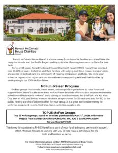 - McFun—Raising coupon books must be picked–up from RMHC–HI, located at 1970 Judd Hillside Road (Manoa). For neighbor island orders, coupon books will be shipped.